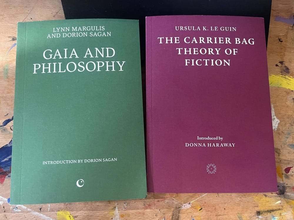 “I’ve been reading these microscopic books - there’s one called Gaia and Philosophy, and the other is called The Carrier Bag Theory of Fiction. They are really big thoughts but very small - it really helps my ADHD mind to grasp really difficult concepts.”